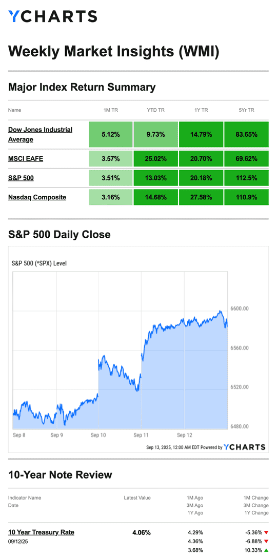 Investors cheered Thursday’s consumer inflation report, anticipating that the reading wouldn’t be enough to derail a Fed rate move this month. The S&P and Nasdaq posted record intraday highs and closes three days in a row, while the Dow Industrials cracked 46,000 for the first time.6